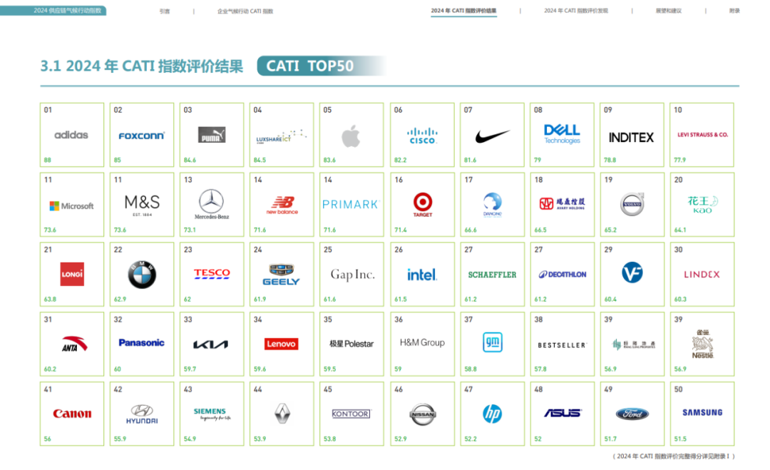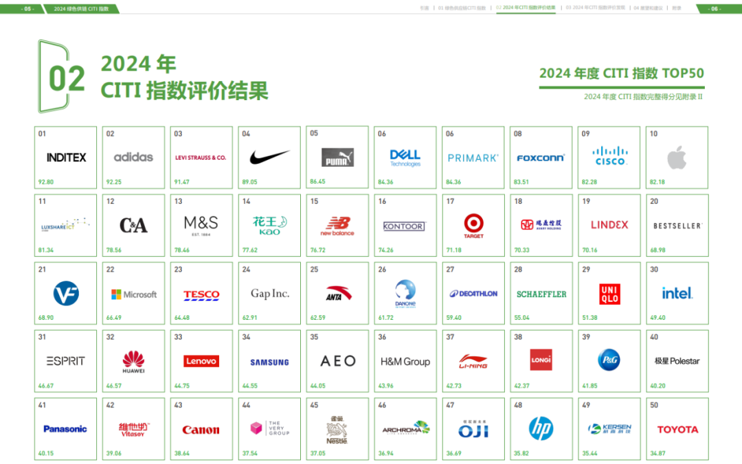 2024年,IPE全面升級CITI指數(shù)和CATI指數(shù)。升級后的CITI指數(shù)重點關(guān)注供應(yīng)鏈合作,從管理機(jī)制、合規(guī)與整改、資源消耗與污染物排放、能源使用與應(yīng)對氣候變化、利益方綠色選擇五個維度對企業(yè)的綠色供應(yīng)鏈管理開展量化評價;CATI指數(shù)重點完善產(chǎn)品碳足跡披露和價值鏈減排相關(guān)指標(biāo),從治理機(jī)制、測算披露、碳目標(biāo)設(shè)定、碳目標(biāo)績效和減排行動五個維度對企業(yè)在氣候治理方面的行動開展動態(tài)評價。