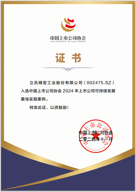立訊精密入選“中國上市公司ESG百強(qiáng)榜單”