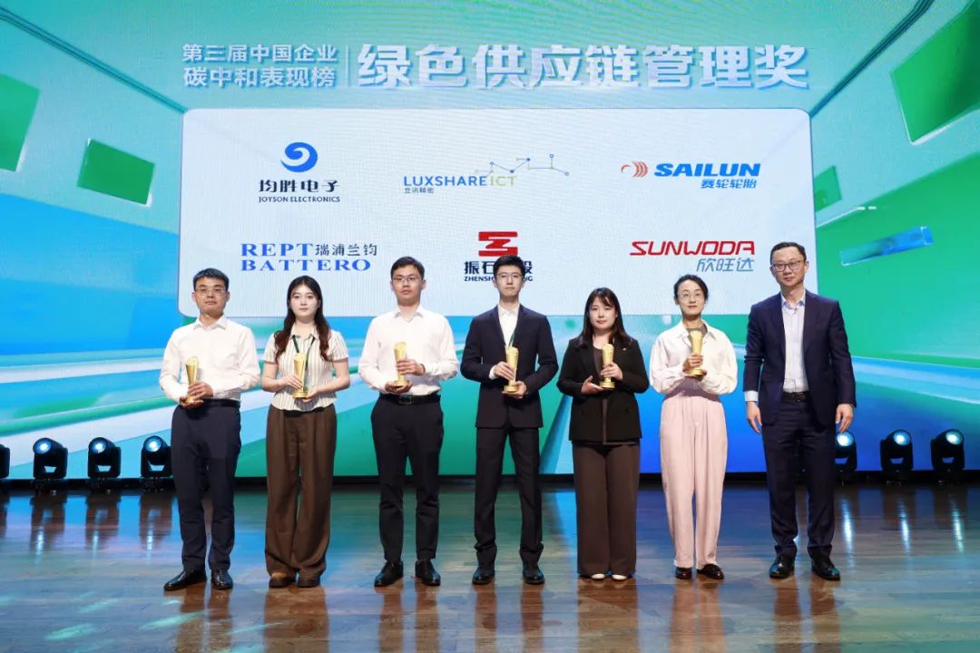6月6日,由第一財(cái)經(jīng)主辦,上海交通大學(xué)碳中和發(fā)展研究院、上海環(huán)境能源交易所聯(lián)合發(fā)起的第三屆中國(guó)企業(yè)碳中和表現(xiàn)榜正式揭曉。立訊精密憑借積極的可持續(xù)管理措施,以及在推動(dòng)碳減排和綠色發(fā)展行動(dòng)中的卓越表現(xiàn),榮獲“綠色供應(yīng)鏈管理獎(jiǎng)”。